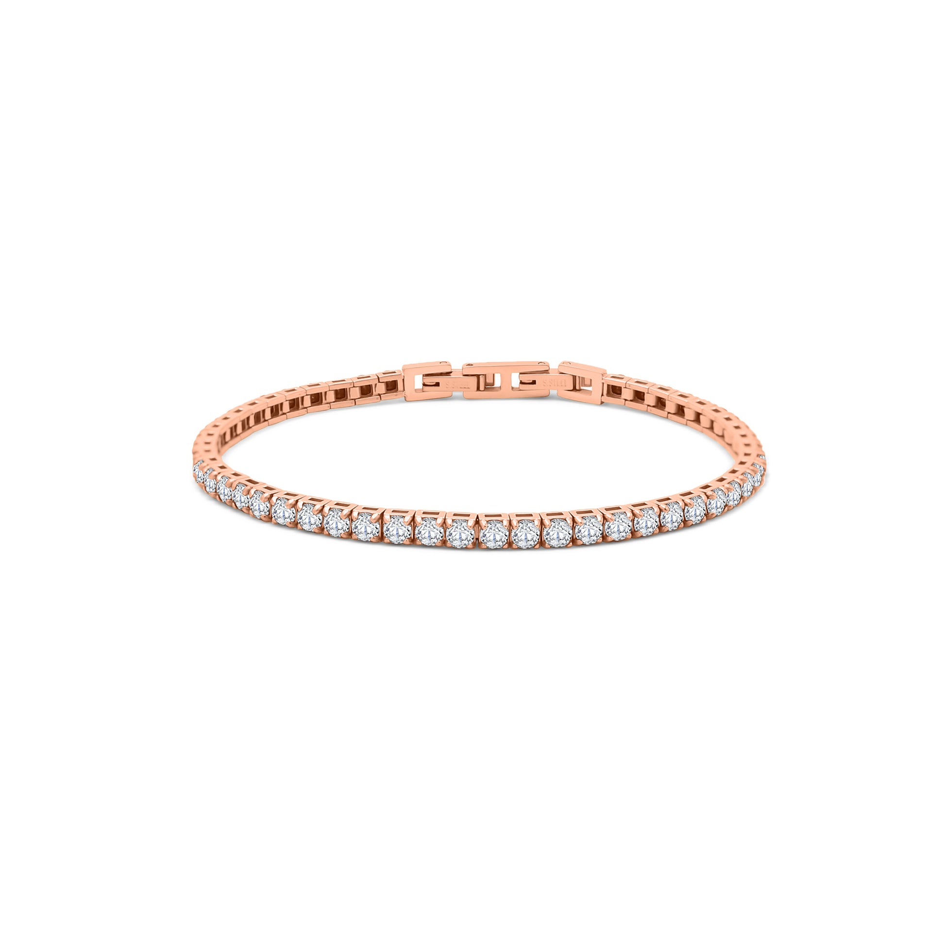 צמיד טניס רוז־גולד עם אבנים בהירות. איזון בין עדינות לנוכחות.