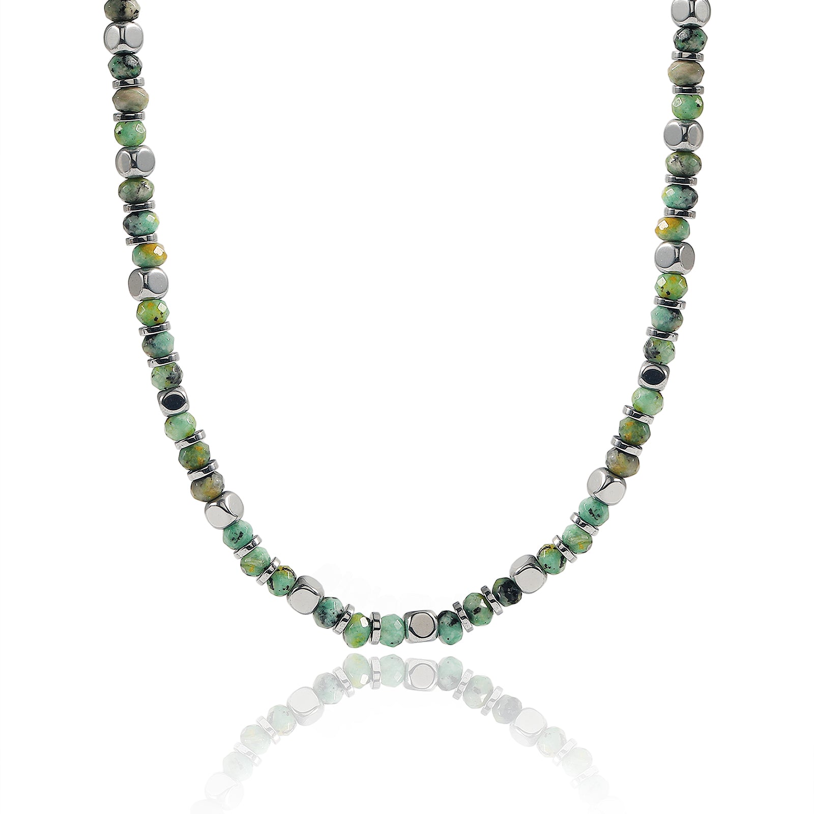 שרשרת ירקרקה בגימור מבריק - נוכחות מרעננת ולא מתאמצת.