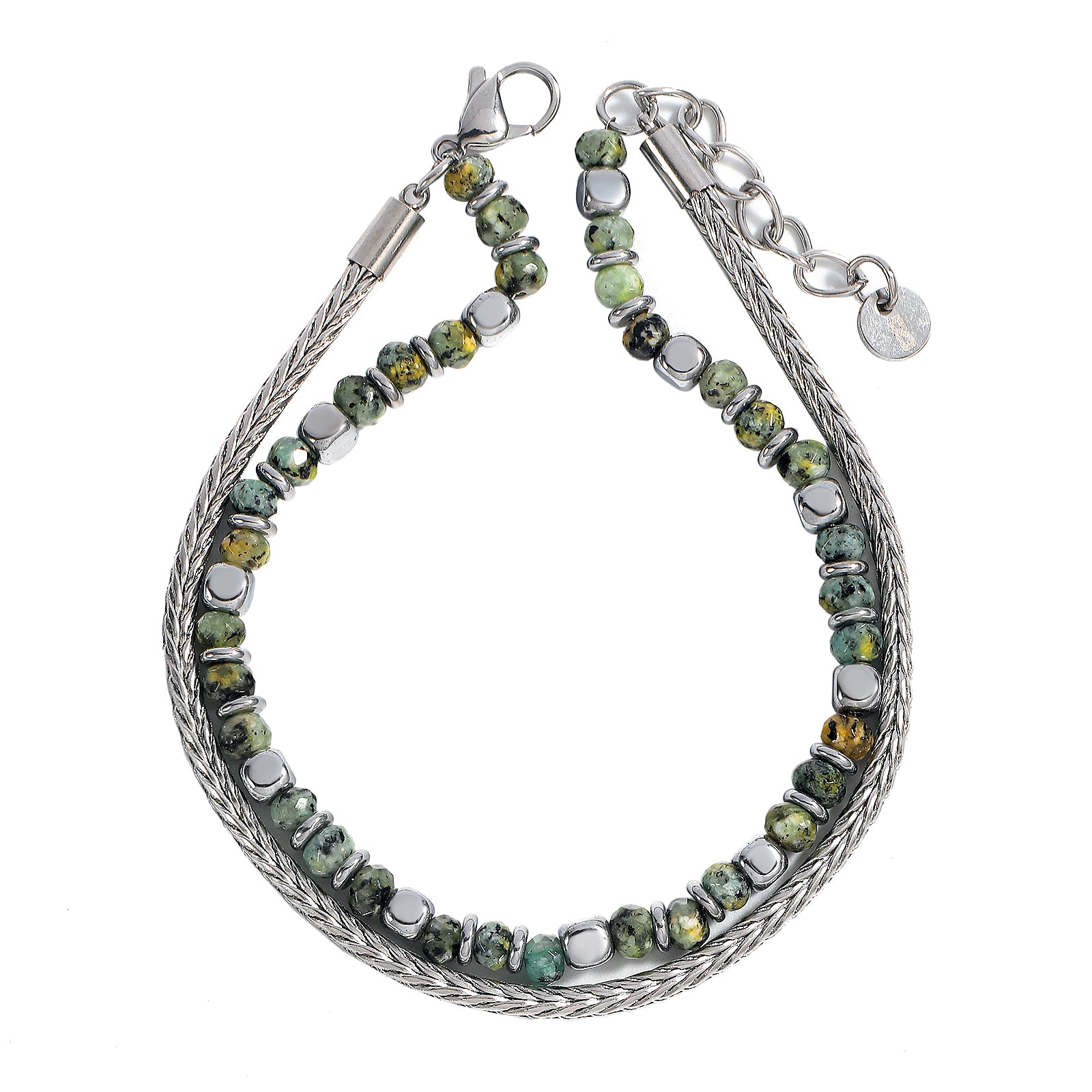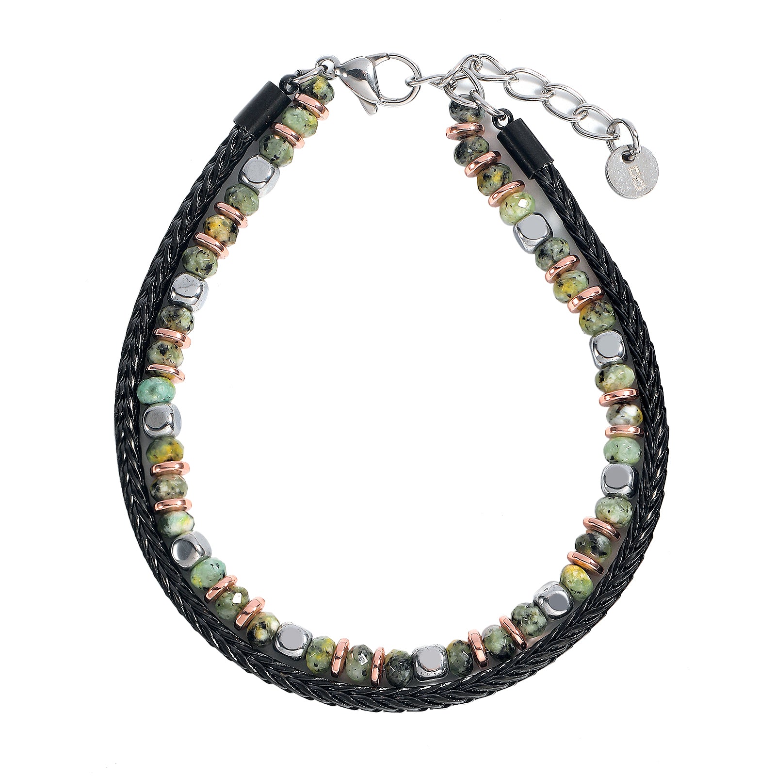 צמיד חרוזים עם נגיעות צבע חמות על גבי עור כהה - וייב טבעי עם עוצמה גברית מדויקת.